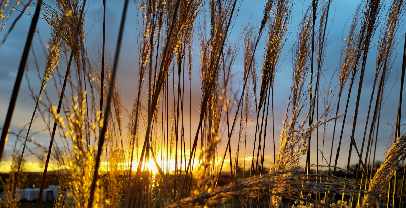 Die ersten Fröste haben Blätter und Blüten abgeräumt, die Dahlien sind geschnitten und verpackt, einige Stauden wurden gestutzt, viele bleiben über den Winter stehen - als Frostschutz, als Überwinterungsquartier und für eisige Raureiflandschaften. Hohe Gräser lassen sich gut zusammenbinden - besonders hübsch wenn man einen Strang Halme außen herum flechtet.