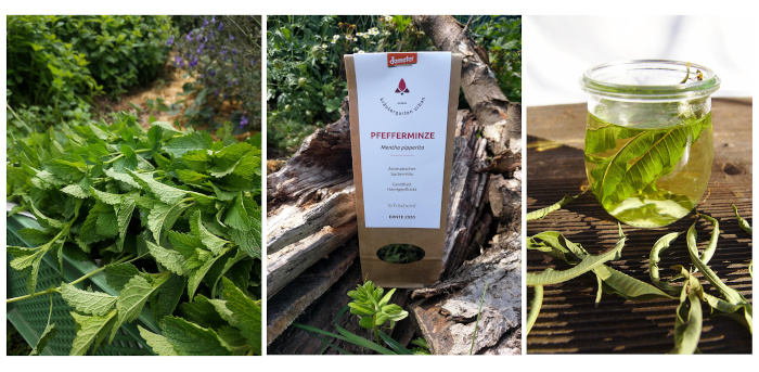 An dieser Stelle möchten wir Ihnen auch unsere aromatischen Kräutertees wärmstens empfehlen! Verveinetee lässt an jedem trüben Tag die Sonne aufgehen und schmeckt eigentlich jedem (auch Kleinkindern und Männern;), der allgegenwärtige Beuteltee ist mit unserem Pfefferminzmix nicht vergleichbar, die Melisse duftet zitronig und nicht nach Heu. Zudem gibt es viele Heilpflanzen als Solotees und bewärte Mischungen für verschiedene Geschmäcker und als Unterstützung verschiedener Gesundheits-, Lebens- und Problembereiche.