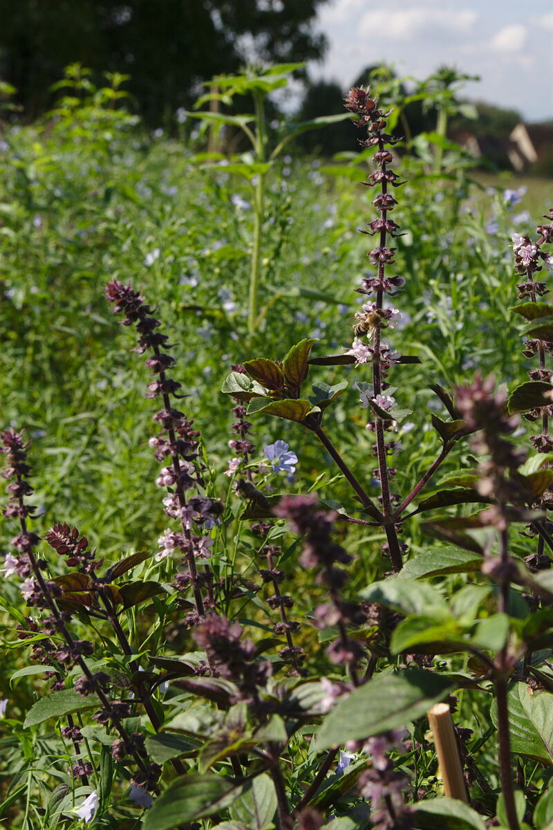 Der afrikanische Strauchbasil ist sehr blühfreudig - zur großen Freude von Bienen und anderen Insekten. Er ist ein Bienenmagnet und liefert viel Nektar.