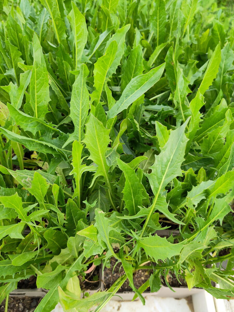 Bildet kompakte buschige Pflanzen. Die löwenzahnähnlichen Blätter werden bis zu 60 cm lang. Die raschwüchsigen Blätter können auch einzeln geerntet und sowohl roh als auch gekocht gegessen werden.