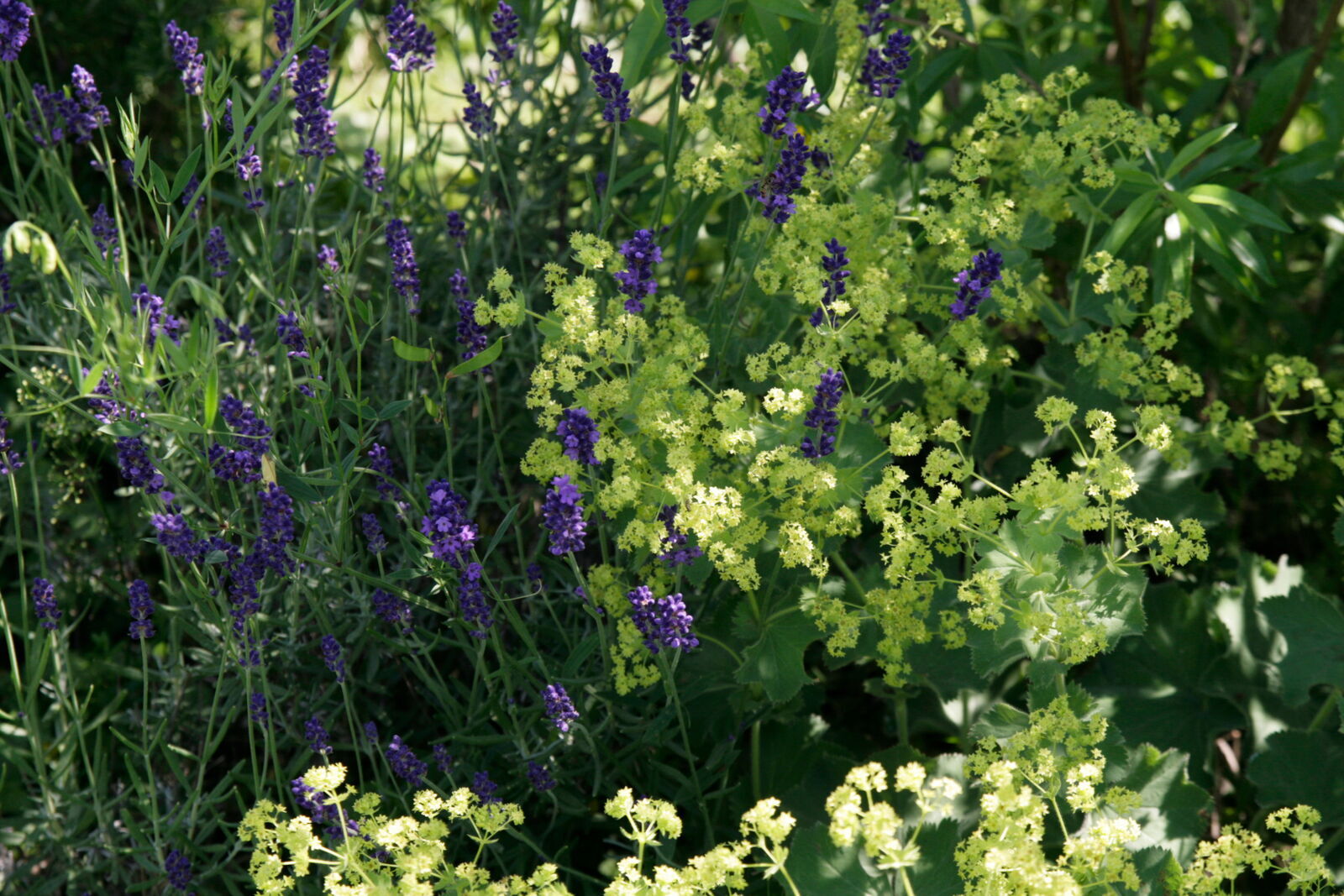 Frauenmantel wächst gerne unter Gehölzen im Halbschatten, kann aber auch als Bodendecker und Lückenfüller in der Sonne gedeien.