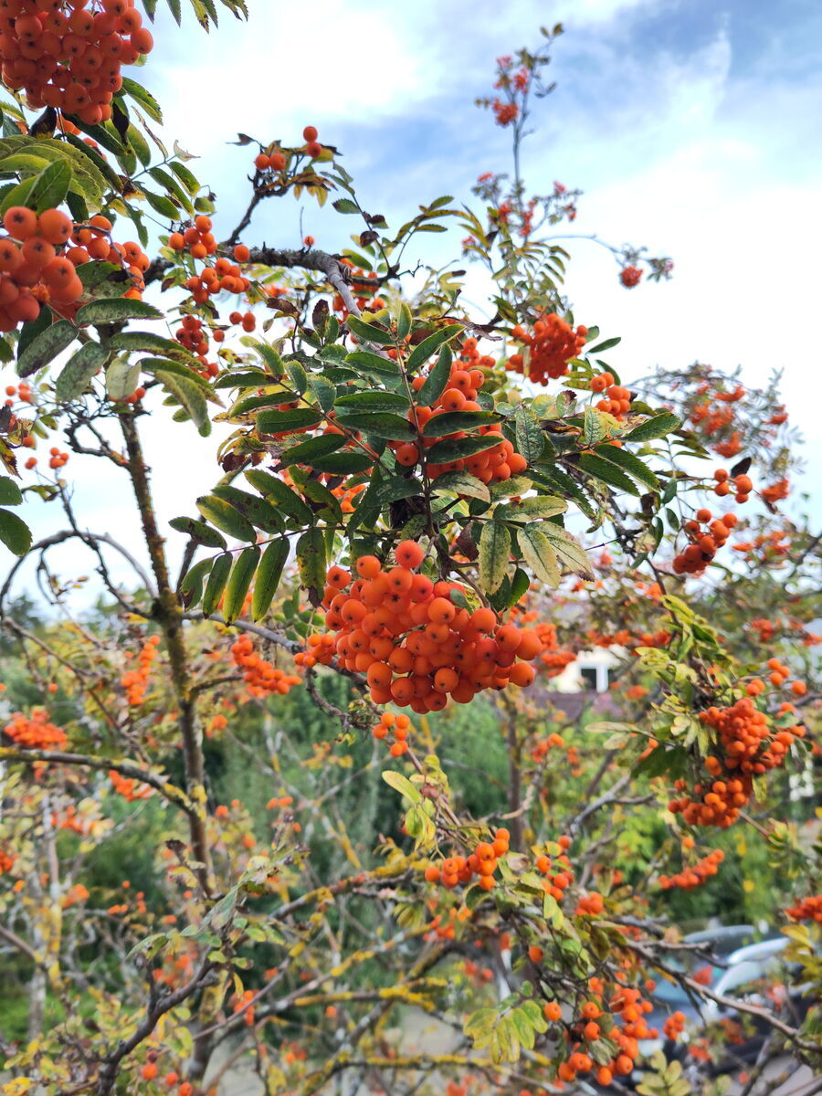 Vor allem die Amseln warten sehnsüchtig aufs Reifen und gönnen sich dann zum Frühstück und Abendbrot die orangen Beeren. Zudem sind die weißen Doldenblüten im April reichliche Pollenspender und bei vielen verschiedenen Insektenfamilien sehr beliebt. Zu guter Letzt ist die Vogelbeere wichtige Raupenfutterpflanze. Die Bäume werden hoch, wachsen aber langsam. Die kleinen Blätter machen einen lichten Schatten und sind gut als Mulch im Staudenbeet geeignet.