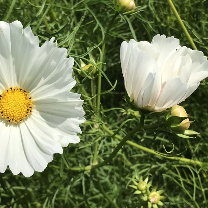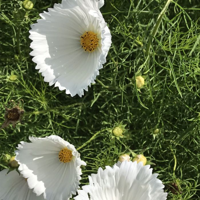 Aus feingefiederten, starkwüchsigen und verzweigten Pflanzen treiben große weiße Blüten wie Reifröckchen aus. Ausschneiden verblühter Pflanzenteile erhöht die Blühwilligkeit beträchtlich. Schnittreife, wenn die erste Blüte gut geöffnet ist. Alte Bauerngartenpflanze und beliebte Schnittblume für feine Sommerblumensträuße.