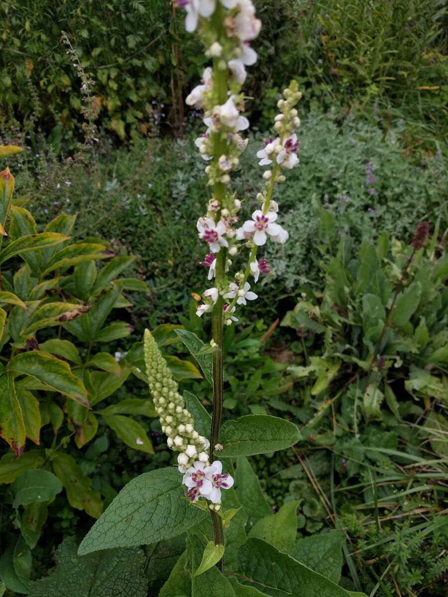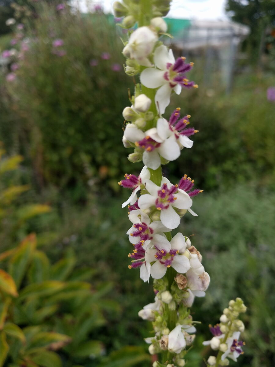 Die grünen Blätter sind wie bei Verbascum nigrum kaum behaart aber matt und stehen aufrecht. Der Horst wird schnell breiter, die sehr langlebige Cheixii wächst zur stattlichen Staude und kommt jedes Jahr wieder. Die zahlreichen Blütenstengel werden bis 1m hoch. Die weißen Blüten schmücken sich mit lila Staubfäden. In manchen Jahren gibt es auch eine zweite, späte Blüte.