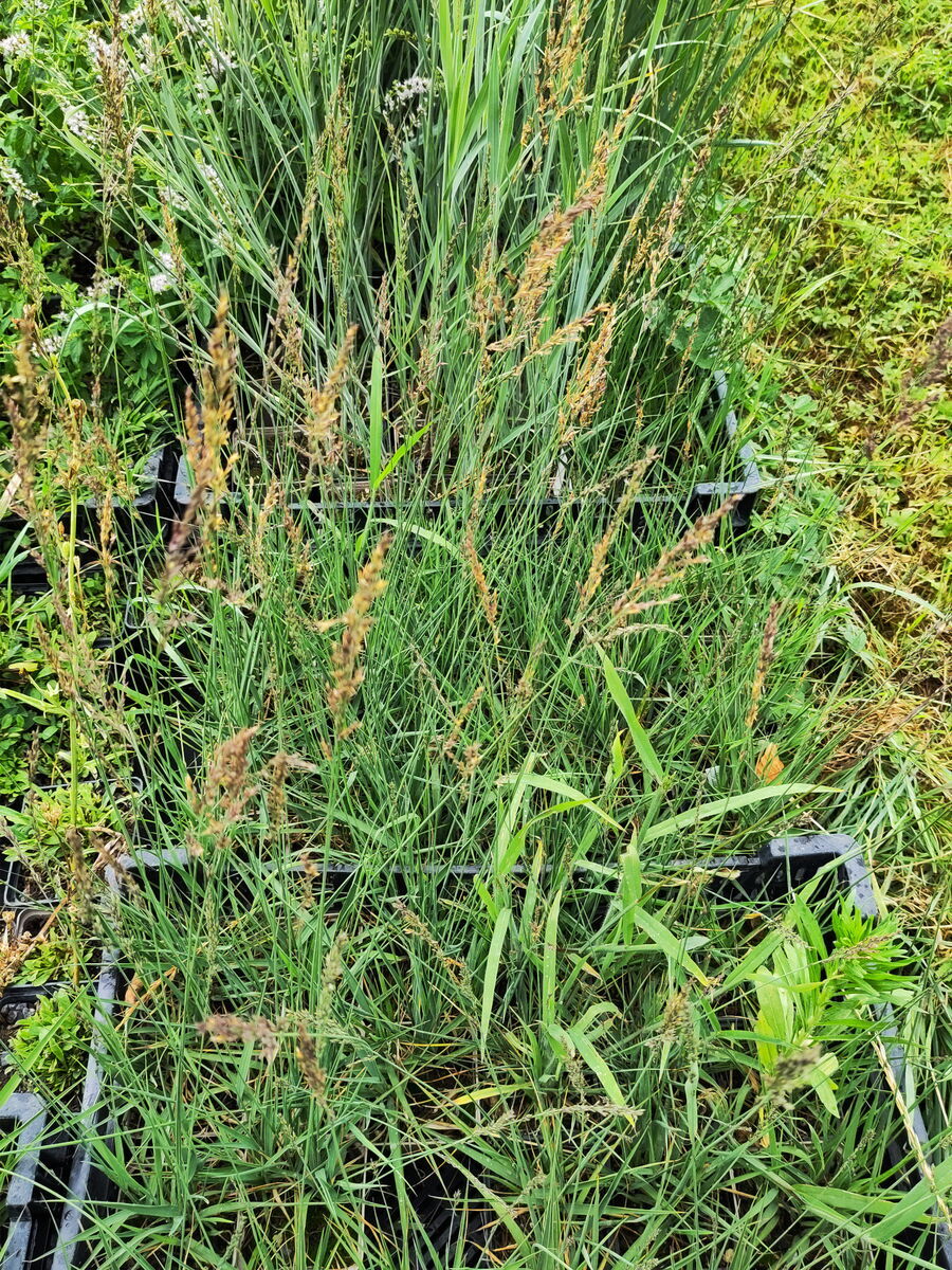 Das blaue Pfeifengras 'Moorhexe' ist zu jeder Jahreszeit anders. Im Frühjahr lichtgrün und fein, wird es robust mit den braun-schwarzen Blüten ab August, hin zu einer goldgelben Herbstfärbung. Es wächst straf aufrecht und macht sich daher gut als Kontrast zu eher nickenden oder hängenden Stauden.