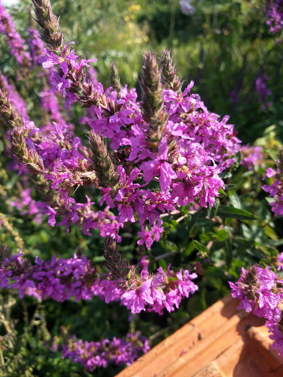 Der Bluweiderich ist während der Blüte eine imposante Pflanze. Seinen Namen hat er nicht nur, weil man ihm blutstillende Eigenschaften nachsagt, sondern auch wegen der Blütenfarbe - wobei diese eher ein ins bläuliche fallende Rot ist. Die bis zu 80cm hohen purpurfarbenen Kerzen sind wunderschön, zahlreich und von Insekten umschwärmtt.