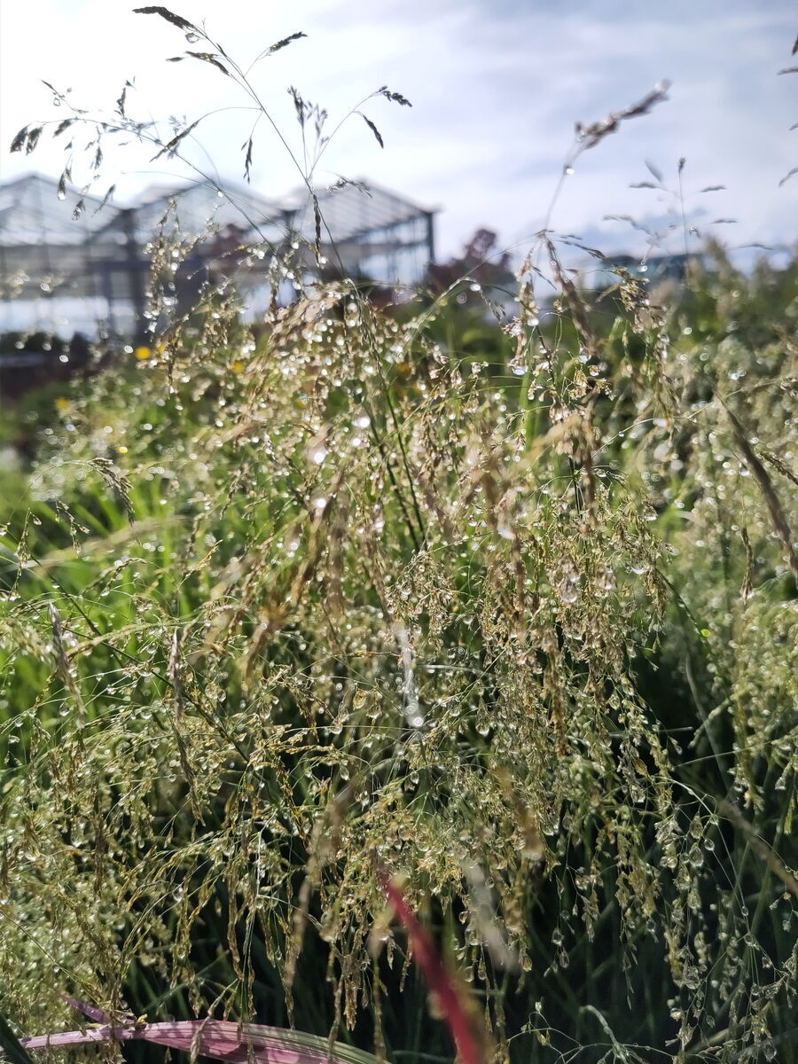 Der Tau fängt sich oft in den Rispen und funkelt dann im Sonnenlicht. Besonders erwähnenswert ist die lange Haltbarkeit der Blüten, die Sie auch ins Zimmer holen und in Ihre Blumensträuße binden können. Das Diamantgras eignet sich für naturnahe Pflanzungen und Beete gleichermaßen. Es gedeiht besonders gut auf frischen, lockeren Böden, kommt aber auch mit Sommer-Trockenheit gut klar. Auch für Pflanzgefäße ab 10 Liter Erdvolumen.