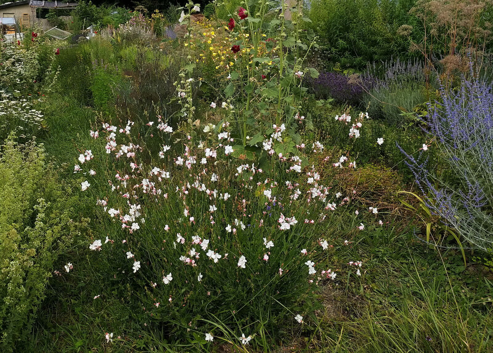 Die Gaura ist ein dankbarer Dauerblüher. Die üppigen Büsche sind Garten- und Kübel geeignet. Die Staude zieht im Winter ein. Sie hat schmale Blätter und viele lange feine Äste mit Blütenrispen. Die Pracht- oder Präriekerze blüht von Juli bis zum Frost. Sie wird fleißig von Insekten besucht.