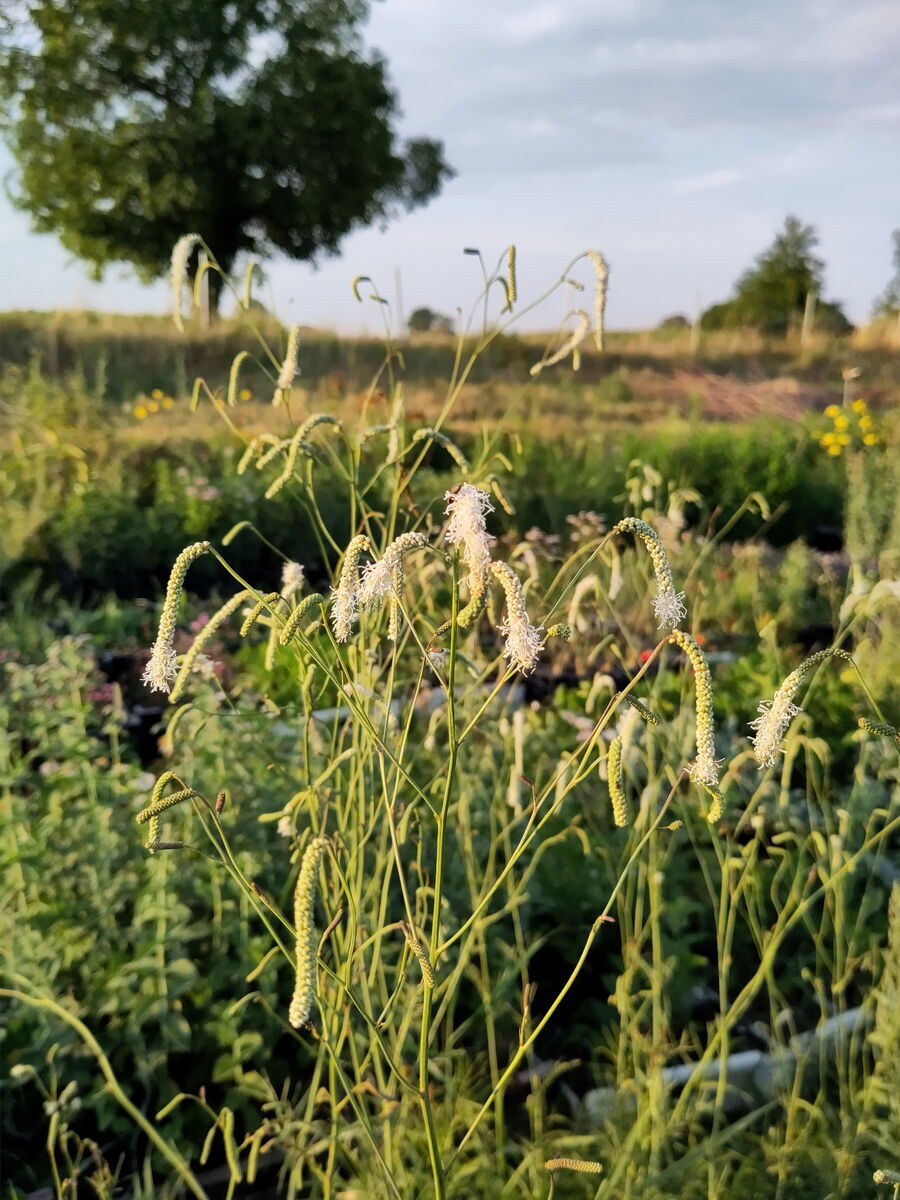 In gut Deutsch: große Stauden mit feinem Laub, über die sich viele laaange Stengel mit wippenden Blütenschwänzen erheben. Hummelmagnete (wippt noch mehr), toll zu großen Gäsern, Wasserdost 'Chocolate', lila Astern...