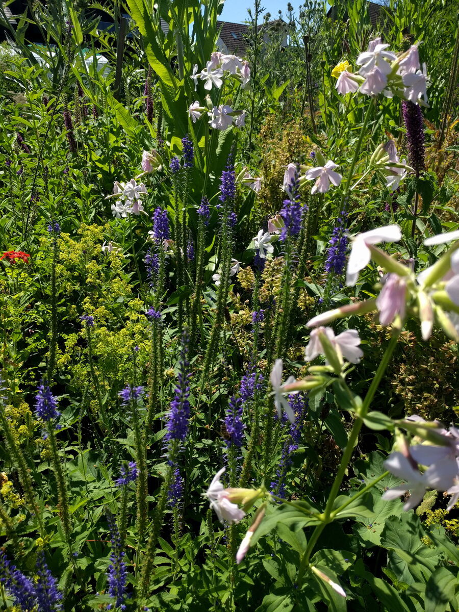 Die Pflanze macht sich gut zu kontrastierenden Farben wie gelben oder pinken Sommerblumen, oder zu dem grün-gelben Frauenmantel!