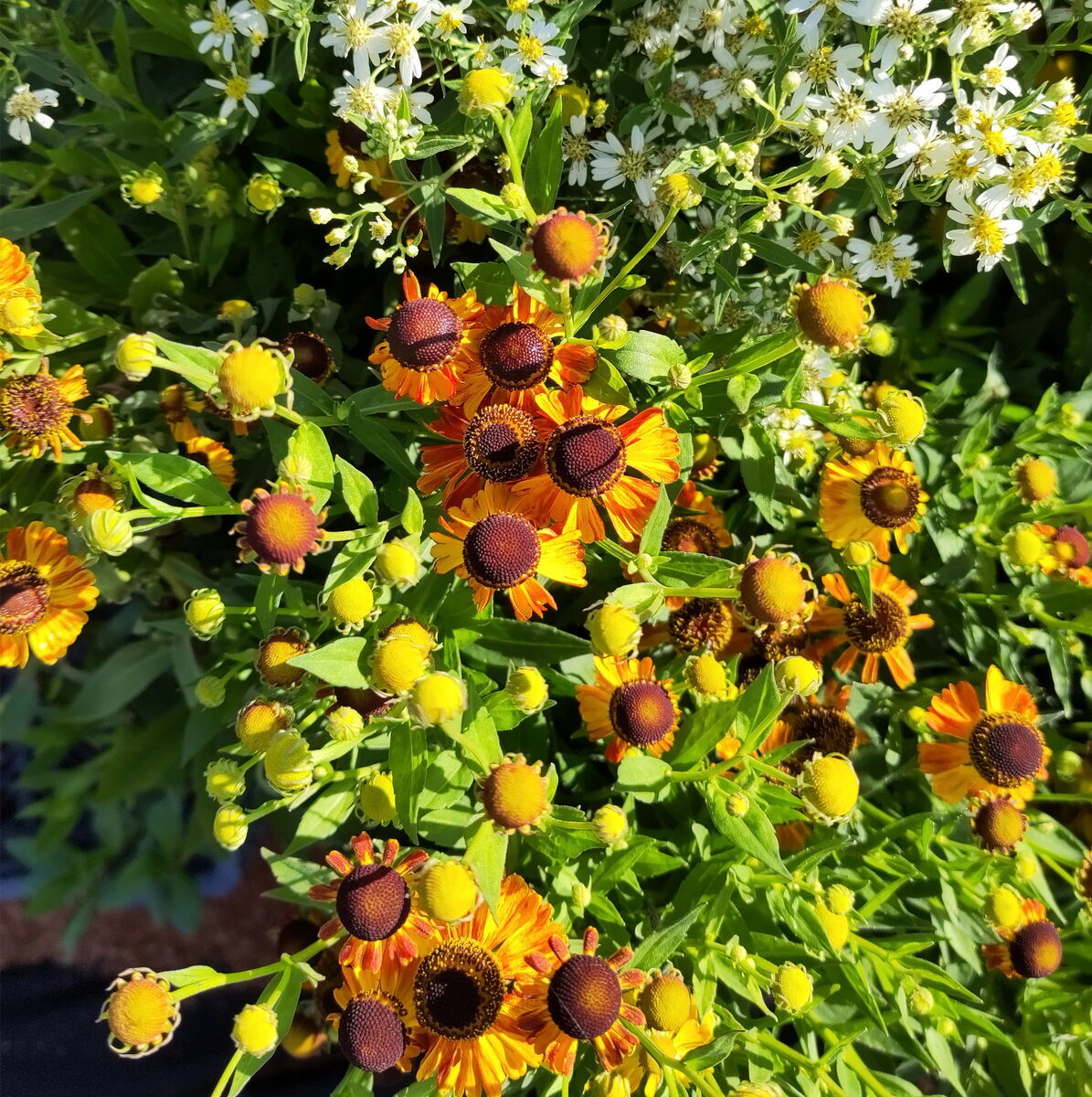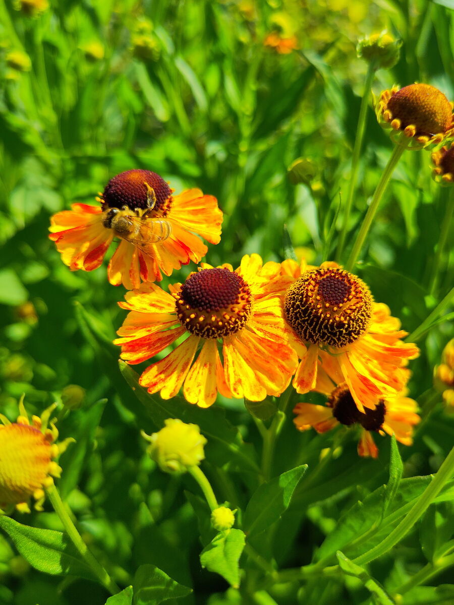 Am schönsten sind Sonnenbräute, ähnlich wie bei Phlox und Astern mit: Sonnenbräuten. Unterschiedliche Farben in kleine Gruppen nebeneinandergesetzt, umweht von Gräsern - ein Sommertraum!