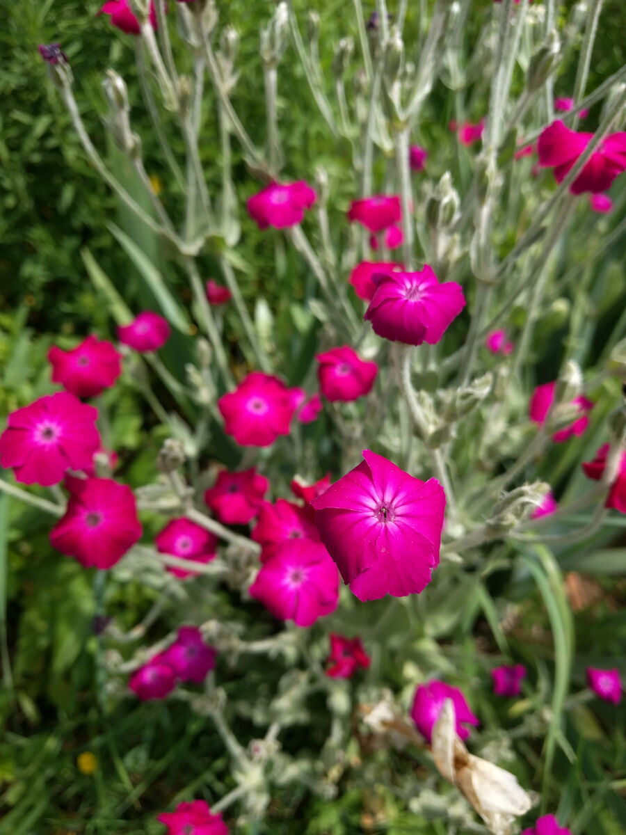 Die Kronen-Lichtnelke ist eine intensiv leuchtend, dunkelrote Schönheit mit 2-3 cm großen, vielzähligen Blüten auf langen, wie die Blätter weiß-filzigen Stielen. Die längsovalen Blätter bilden farblich einen Kontrast zur Blütenfarbe - jedoch auch zum restlichen, grünen Beet. Die Vexiernelke ist immergrün und bildet kleine Blatthorste.