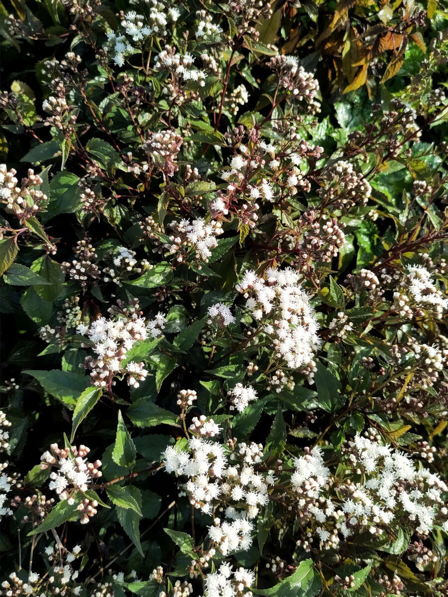 Dieser Wasserdost besticht duch sein dunkles Laub - und eignet sich daher wunderbar als Kontrast zu  hellen Blüten oder feinen Gräsern. Helle Blüten hat er auch selber - nämlich reinweiße Dolden ab Juli.